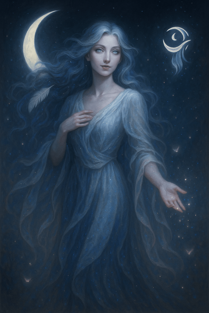 Elyssine shapes the subconscious. She governs imagination, dream-visions, prophecy, and the emotional truths that elude logic. Where Vaelorith defines what is, Elyssine reveals what might be.