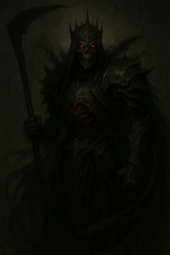 Zarkeneth governs not murder, but the inevitability that all journeys end. He is the divine custodian of the dead — the shepherd, not the executioner. Where Halvyra nurtures life, Zarkeneth dignifies its conclusion.